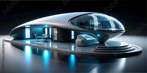 Futuristic architectural design featuring sleek lines and advanced technology with glowing elements at night