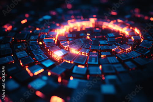 Futuristic Blue Abstract Design with Digital Vortex, Glowing Spiral Energy, and Swirling Particle Motion for Technology Backgrounds
