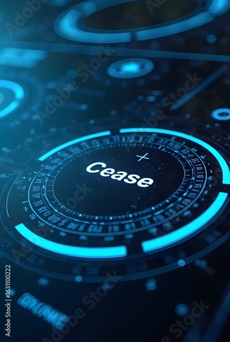 cease, technology, futuristic, interface, digital, gui, screen, buttons, control, command, stop, halt, terminate, blue, dark, neon, glowing, abstract, science, circle, system, design, element, glow, white, word, visual, display, effect, concept, stark, central, business, futurist, graphic, background, light, information, bright, modern, computer, network, pattern, attention, create, dynamic
