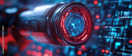 camera, technology, setting, futuristic, perspective, virtual, projection, visual, graphic, interaction, zoom, medium, spectrum, imagination, software, tech, lens, innovation, exploration, dynamic, interface, system, future, photo, network, content, electronic, effect, idea, structure, datum, circuit, science fiction, image, motion, scene, capture, perception, ai, frame, angle, composition, reality, light, red, blue, concept, style, closeup