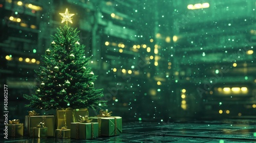 christmas, tree, present, gift, holiday, winter, futuristic, neon, green, light, snow, star, decoration, festive, celebration, joy, magic, wonder, season, december, year, night, dark, city, urban, technology, digital, art, graphic, design, illustration, abstract, modern, stylish, aesthetic, style, image, photo, three-dimensional