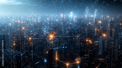 city landscape, technology, network, overlay, skyscraper, night, smart, urban, modern, city, electronic, interface, progress, sophistication, visual, future, integration, illustration, transformation, sustainability, landscape, blueprint, transportation, electrification, interaction, scenario, representation, metropolis, synergy, architecture, innovation, illumination, energy, infrastructure, advance, communication, system, collaboration, showcase, visionary, futuristic, environment, intelligent, complexity, development, efficiency, virtual, automation, operation