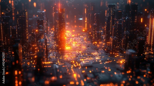 city landscape, neon light, glowing, urban, technology, abstract, digital artwork, science fiction, metropolis, night, illuminated, modern, architecture, future, digital, city, skyline, skyscraper, network, circuit board, high technology, advanced, innovation, progress, development