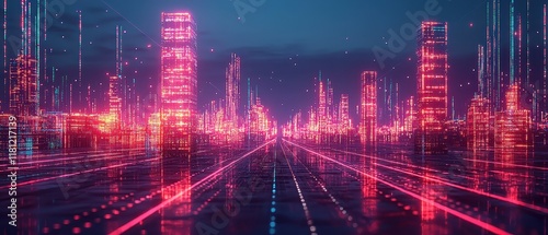 futuristic, city landscape, neon, light, digital, element, night, technology, skyline, urban, landscape, architecture, design, modern, abstract, glowing, bright, colourful, computer graphic, artificial, creativity, innovation, metropolis, illumination, vibrant, scenery, city lights, high technology, fantasy, visualisation, night scene, aesthetic, artistic, perspective, science fiction, artificial intelligence, cybernetic, virtual, energy, environment, advanced