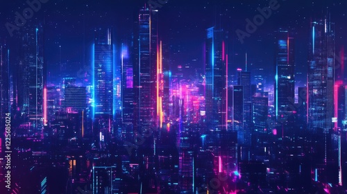 Futuristic Cityscape with Neon Lights and Skyscrapers in a Digital World Design Concept for Web and Graphic Projects