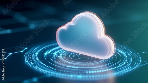 Futuristic Cloud Technology Concept with Digital Circles and Soft Glow on a High-Tech Background