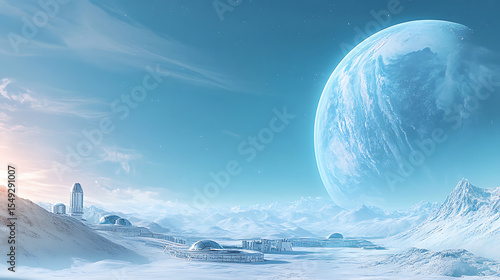 Futuristic Colony on an Alien Planet with a Dominant Blue Moon