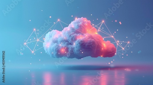 three-dimensional, cloud, network, connection, compute, cyberspace, platform, technology, server, innovation, solution, performance, geometric, dynamic, perspective, software, pattern, virtual, system, design, glow, concept, artificial, hologram, futuristic, interface, symbolize, integration, wireframe, future, semitransparent