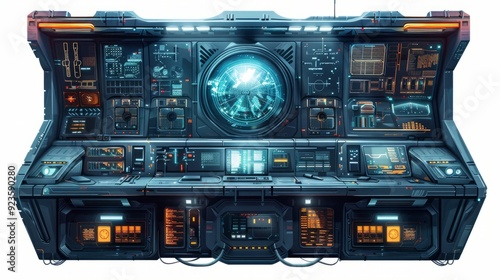 Futuristic control panel with holographic display and advanced technology features
