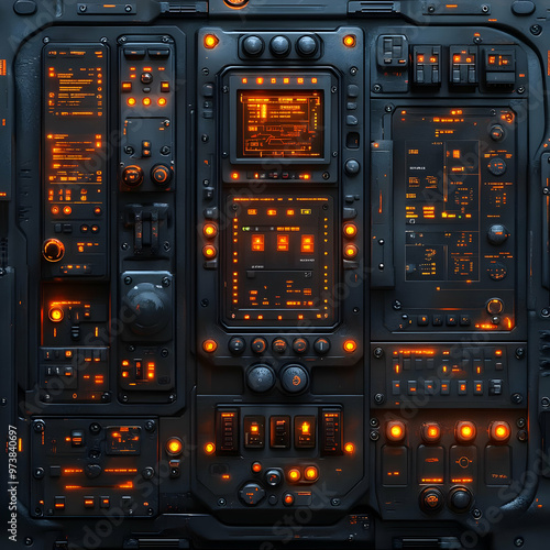 Futuristic Control Panel with Orange Lights - 3D Illustration