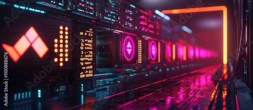neon, light, glow, futuristic, corridor, panel, technology, digital, abstract, science fiction, modern, graphic, design, background, pattern, texture, space, concept, art, illustration, virtual, reality, future, innovation, interface, network, cyberspace, datum, code, signal, science, fantasy, energy, power, industrial, grid, line, shape, geometric, metal, steel, dark, vibrant, colourful, bright, screen, display, perspective