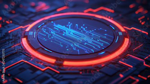 digital, security, futuristic, cyber, shield, glowing, circuit, design, surface, technology, innovation, protection, electronic, abstract, blue, red, light, pattern, network, system, tech, modern, science fiction, virtual, interface, datum, connection, energy, glow, high technology