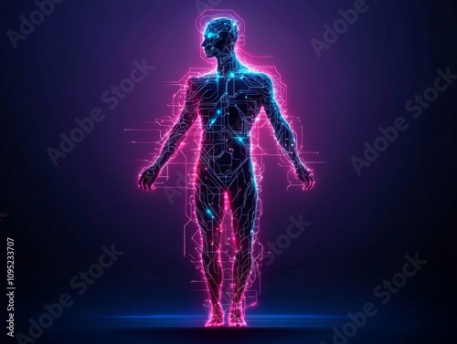 digital, human, silhouette, neon, circuit, technology, abstract, art, vibrant, colours, futuristic, hologram, creative, design, innovation, representation, electronic, modern, graphic, visualisation, anatomy, light, energy, connection, cyber, optimization, communication, progress, enhancement, imagination, inspiration, structure, manifestation, illusion, beauty, science, concept, dynamic, showcase, artistic, projection, interface, composition, display, aesthetic, interaction, environment, trend, pattern