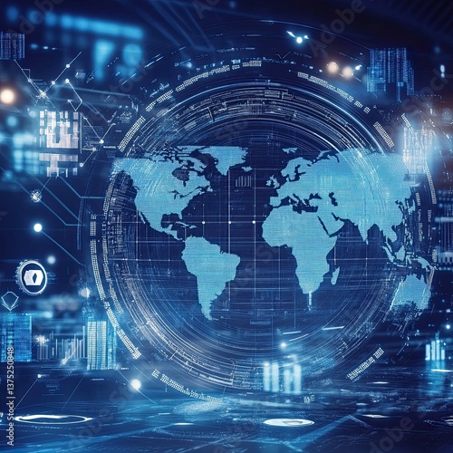 Futuristic Digital World Map Visualization with Technology Elements