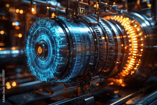 engine, futuristic, technology, digital, interface, glowing, blue, light, screen, display, abstract, metal, chrome, silver, steel, mechanical, industrial, machinery, gear, turbine, system, datum, information, circuit, network, line, circle, round, shape, design, modern, concept, power, science, innovation, future, automation, progress, engineering, development, advanced, complex, detail, background, dark, texture, pattern