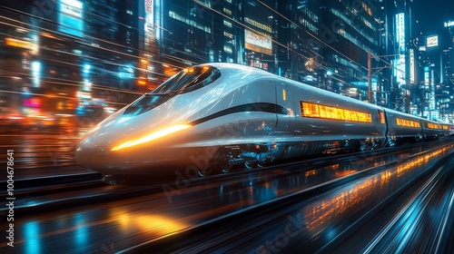 train, city, night, futuristic, speed, travel, urban, transportation, modern, technology, light, neon, motion blur, fast, railway, track, future, movement, sleek, bright, dynamic, journey, progress, innovation, energy, power, abstract, background, concept, design, city landscape, architecture, street, glow, blur, line, curve, vehicle, rail, direction, electric, engine, wheel
