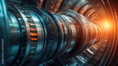 engine, metal, technology, futuristic, machinery, mechanic, design, automotive, industrial, gear, circular, pattern, shine, surface, detail, light, abstract, engineering, construction, concept, metallic, science fiction, image, dynamic, structure, part, system, speed, innovation, movement, power, interior, equipment, cylinder, digital, blue, orange, complexity, aesthetic, modern, production, element, visual, background, illustration