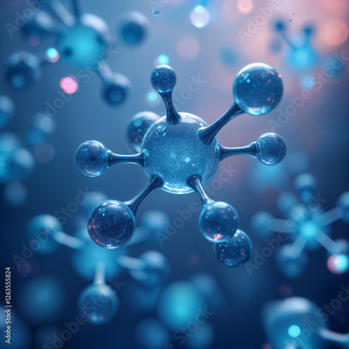 Futuristic Molecular Structure with Glowing Blue Atoms