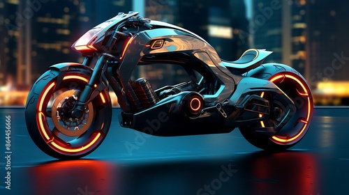 futuristic motorcycle, with advanced technology and in the background an illuminated and futuristic city