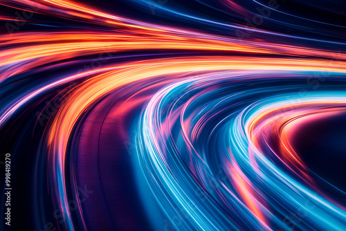 Futuristic Neon Road Speed with Light Laser Trails – Abstract LED Curves and Fast Moving Car Strips Design