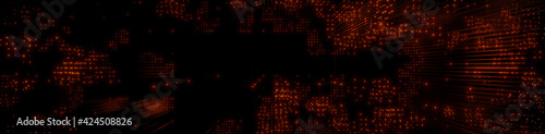 Futuristic, Orange Digital Grid background. Network Tech Wallpaper Banner. 3D Render