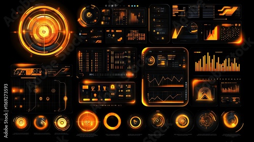 futuristic, technology, science fiction, interface, game, app, video, datum, display, graph, chart, targeting, system, orange, glow, digital, cyber, modern, sleek, tech, design, element, icon, symbol, circle, line, grid, dashboard, control, panel, monitor, screen, information, visualisation, analysis, performance, tracking, progress, gaming, virtual, reality, simulation, software, hardware
