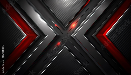 Futuristic technology abstract background featuring dark metallic chevrons and glowing red accent