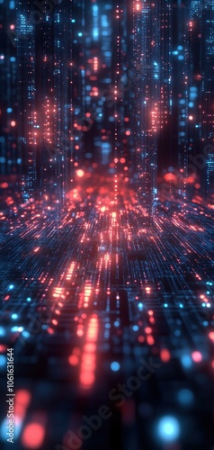 futuristic, technology, digital, landscape, red, cyan, light, night, advanced, background, vibrant, abstract, glowing, pattern, depth, design, network, cyber, datum, visualisation, illuminated, high technology, generative, ai