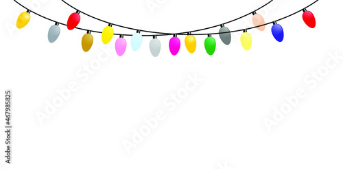 Garlands of colorful light bulbs isolated on a white background, eps 10. Vector illustration, flat cartoon realistic design, isolated on a white background, eps 10. Concept: new year, christmas.