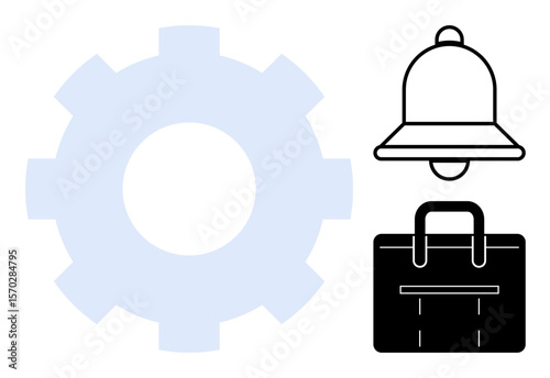 Gear for customization, bell for notifications, and briefcase symbolizing work balance. Ideal for productivity, business, settings, communication, organization alerts efficiency. Simple flat