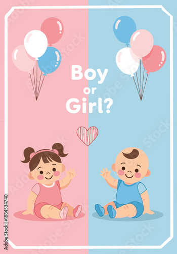 invitation, boy, girl, toddler, shower, reveal, sex, party, birth, cute, announcement, illustration, celebration, graphic design, event, newborn, digital artwork, family, joyful, motherhood, playful, balloon, pink, blue, creativity, artwork, print, stationery, festive, theme, excitement, modern, charming, unique, baby shower, connection, special occasion, entertaining