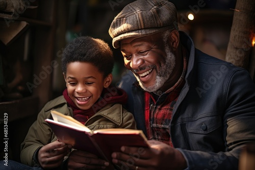 grandfather, grandson, reading, family, bonding, happiness, book, education, childhood, elderly, learning, african american, literacy, joy, love, parenting, teaching, smile, generation, together, care, wisdom, cosy, winter, human relationships, togetherness, male, senior, children, leisure, quality time, warmth, grandparent, guidance, interaction, storytelling, affection, enjoyment, sharing, connection, cultural, tradition, nurturing, support