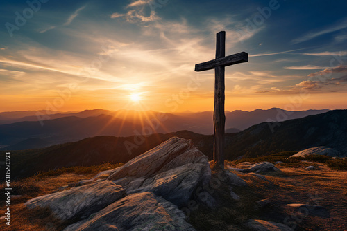 Generative AI picture of the holy cross symbolizing death and resurrection of Jesus Christ over sky