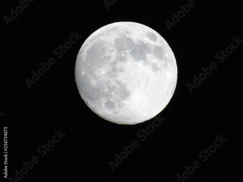 Genova, Italy - 03/20/2019: An amazing photography of the full moon over the city of Genova by night with a great clear sky in background and some stars