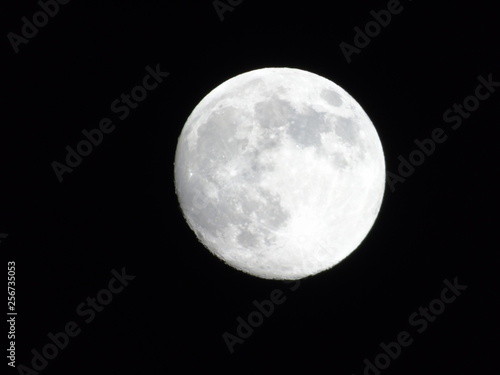 Genova, Italy - 03/20/2019: An amazing photography of the full moon over the city of Genova by night with a great clear sky in background and some stars