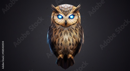 owl, bird, polygonal, geometric, art, digital, graphic, design, animal, wildlife, nature, creature, avian, bird of prey, eye, glowing, blue, brown, dark, background, illustration, artwork, abstract, modern, style, image, picture, photo, graphic, vector, raster, painting, drawing, portrait, artistic, creative, visual, photo