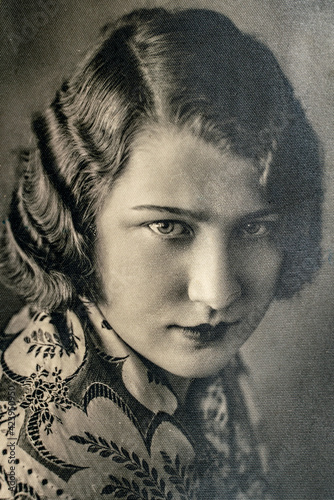Germany - CIRCA 1930s: Face Close up portrait of female in studio. Lady. Vintage Carte de Viste Art Deco era photo