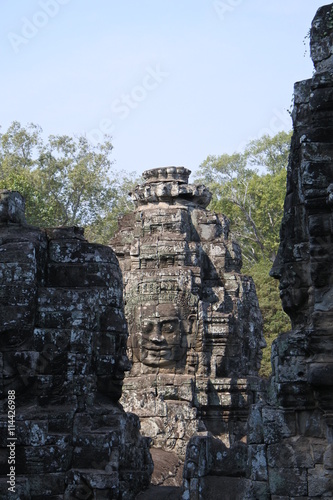 cambodia, khmer, buddha, buddhist, face, face, asia, jungle, angkor thom, temple, monastic, siem reap, sandstone, heaven, blue, queen, palace