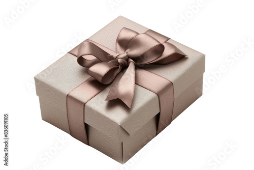 Gift Box with Brown Ribbon and Gold Trim isolated