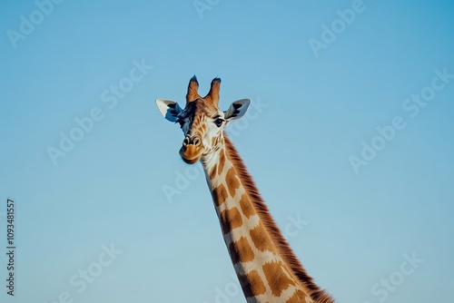 giraffe, animal, wildlife, neck, head, blue, sky, nature, mammal, safari, portrait, spot, long, outdoors, wild, looking, copy space, empty space, image