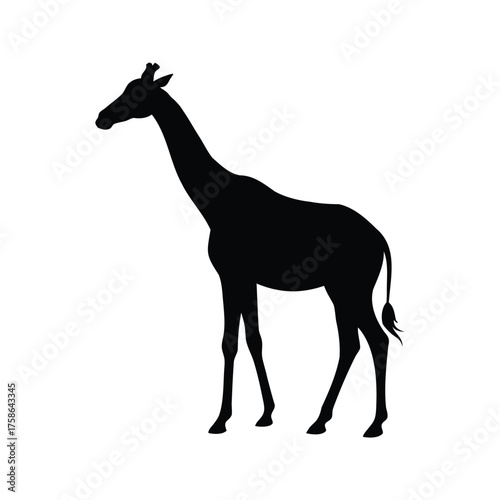 Giraffe silhouette standing tall against a bright white background gracefully posed, giraffe turning head silhouette vector illustration