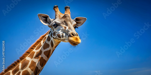 Giraffe with head tilted against clear blue sky, Giraffe, animal, wildlife, nature, sky, blue, tall, mammal, giraffe neck