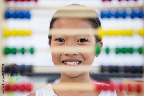 Girl in front of abacus in classroom