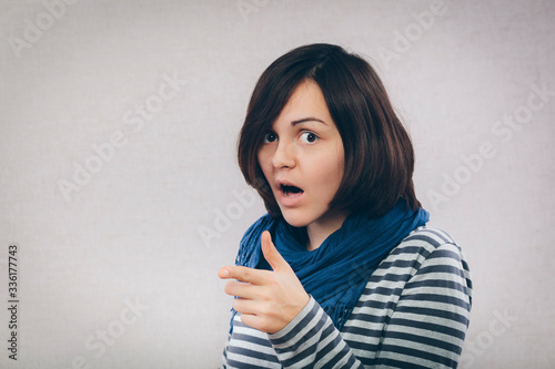 isolated, bully, attractive, copy, white, expression, adult, show, finger, sweater, dynamic, casual attire, people, caucasian, portrait, cute, smile, lady, funny, woman, shock, young, pointing, girl, surprise, somebody, laughing, bad, contempt, person, joyful, showing, accuse, pointing, looking, education, teenage, cheerful, beautiful, background, unexpected, fresh, space, pretty, happy, somewhere