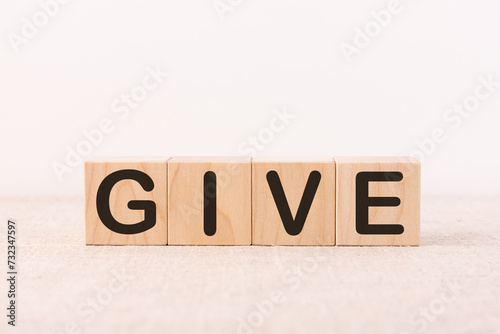 GIVE word made with building blocks on a light background