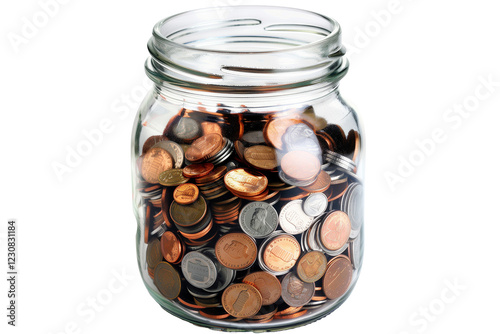 Glass Jar Filled With Mixed Coins for Savings on a Transparent Background