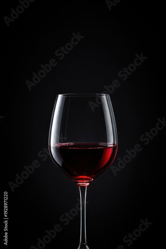 Glass of red wine filled with dark liquid, positioned against a black background, highlighting the transparency of the glass and the wine's color
