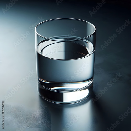 glass of water on black background Clear Glass of Still Water on Dark Minimal Surface with Controlled Studio Lighting