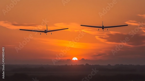 sunrise, sunset, plane, flying, sky, landscape, cloud, field, morning, evening, aviation, flight, nature, travel, scenic, view, beautiful, orange, yellow, aircraft, gliding, glider, horizon, wing, silhouette, calm, peaceful, drone, model, adventure