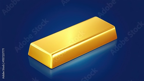 Glimmering Gold Bar on Blue Background with Reflection Details